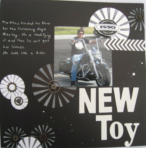 I also wantd to use some chevron in it,because I love them with my Boy's layouts, so About a Boy had a challengChevrons and I am entering it there.  I also had a challeng at My Sketch World to try something new and that I did.  I did not even hurt the paper.